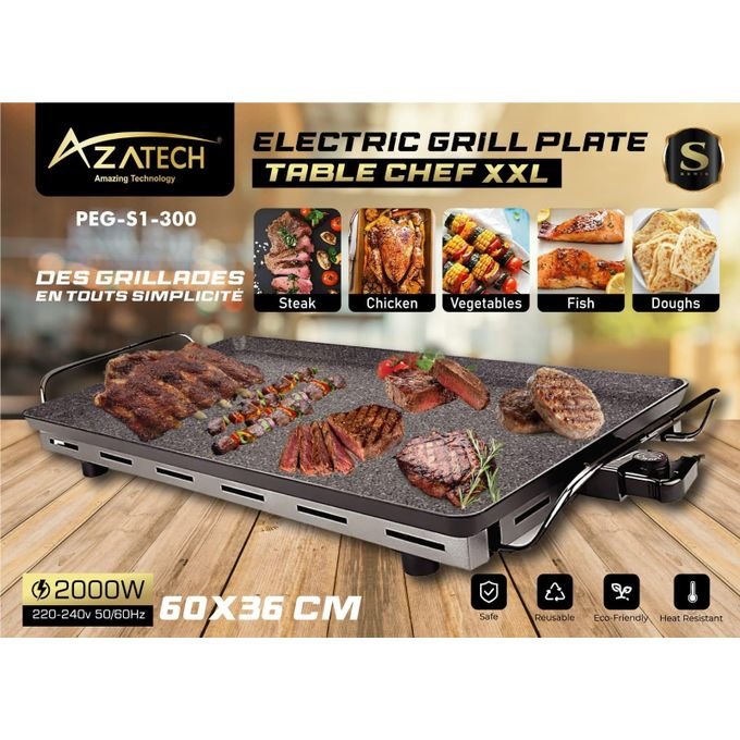 Découvrez la plaque de cuisson électrique Azatech Table Chef XXL, la solution parfaite pour des grillades savoureuses et conviviales. Avec sa puissance de 2000W, elle assure une cuisson rapide et homogène de vos viandes, poissons, légumes et pains. Son large format de 60×36 cm vous permet de cuisiner de grandes quantités en une seule fois, idéal pour les repas en famille ou entre amis. Dotée d’un revêtement antiadhésif de haute qualité, cette plaque garantit une cuisson sans ajout de matières grasses et un nettoyage simplifié. Son thermostat réglable vous permet d’adapter la température selon vos besoins, tandis que ses poignées isolantes assurent une manipulation sécurisée. Conçue pour durer, elle est fabriquée avec des matériaux résistants à la chaleur et respectueux de l’environnement.