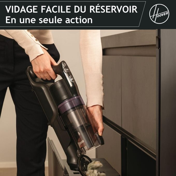 Hoover Aspirateur balais 2en1 sans fil Sans sac avec Mode Turbo, buse Multifonction et Brosse Anti-enchevêtrement, autonomie de 45 Minutes, éclairage LED Park & Go