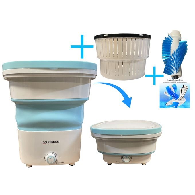 Schneider Mini machine à laver pliable portable de haute qualité 1,8kg + Panier d’essorage + brosse pour chaussure , couleur bleu