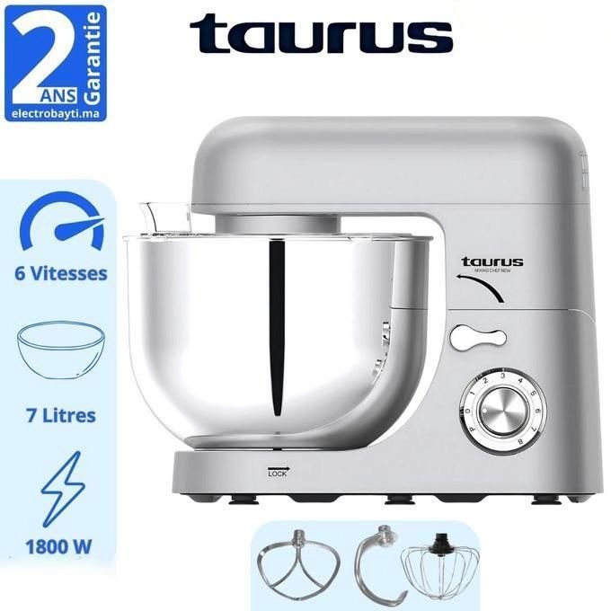 Taurus Robot pétrin multifonction Mixing chef new XL Bol 7 L 1800w 6 vitesses – 2 ans de garantie